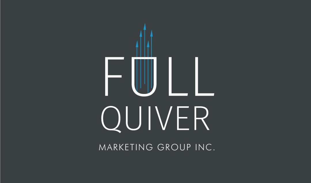 A design was chosen, incorporating a full quiver of arrows, the U serving as the quiver and the arrows representing the variety of marketing solutions offered at Full Quiver as well as the data measurements, trial and error necessary to find a marketing strategy right for an organization.